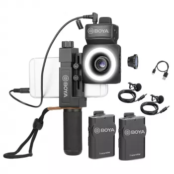Smart Wireless Lavalier Lapel Microphone Kit with Phone Rig for Smartphone Video Recording