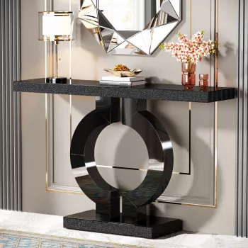 43-Inch Modern Mirrored Console Table with O-Shaped Base for Entryway