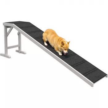 Dog Ramp for Bed, Pet Ramp for Dogs with Non-Slip Carpet and Top Platform, 74" x 16" x 25", White