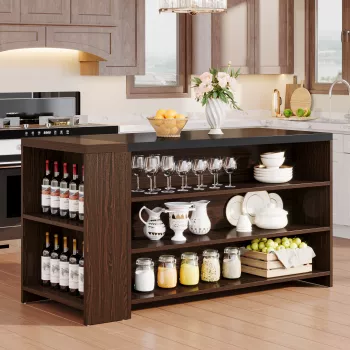 55" Farmhouse Kitchen Island with 5-Tier Storage & Spacious Countertop