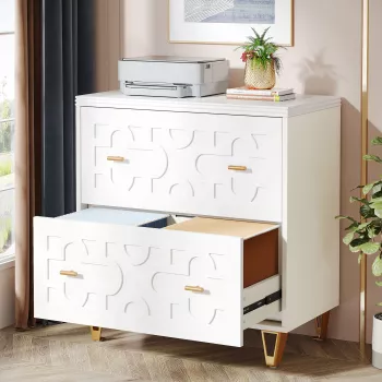 Modern 2-Drawer Lateral File Cabinet for Legal/Letter/A4 Size Storage, White