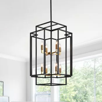 8-Lights Lantern Tiered Pendant Light - Farmhouse Chandelier for Dining Room & Kitchen