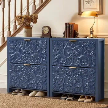 2-Tier Slim Shoe Cabinet Set - Narrow Storage Organizer for Entryway or Hallway in Night Blue