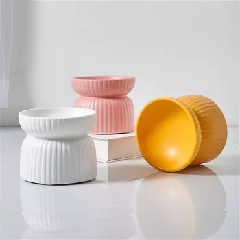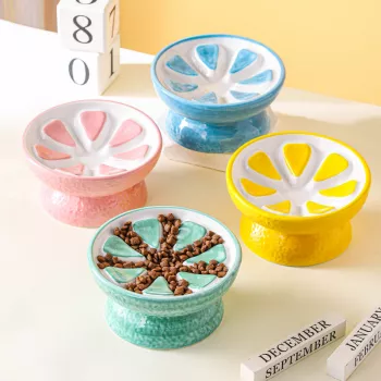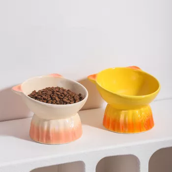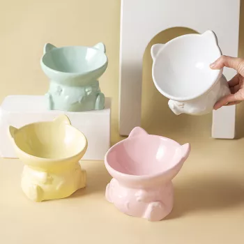 Cute Ceramic Raised Pet Bowl for Cats & Small Dogs