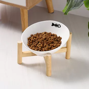 Ceramic Elevated Cat Bowl with Wide-Rim Design for Comfortable Feeding