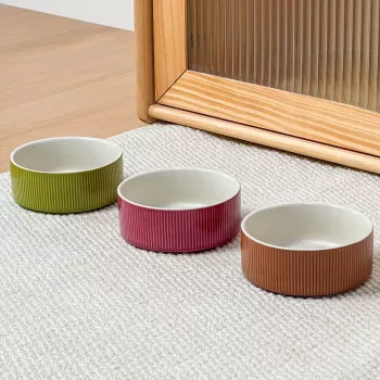 Vertical Stripe Ceramic Pet Bowl for Cats & Small Dogs