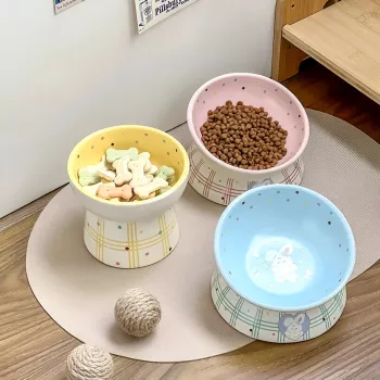 Ceramic Raised Cat & Small Dog Bowl for Cervical Comfort – Cute Cartoon Design
