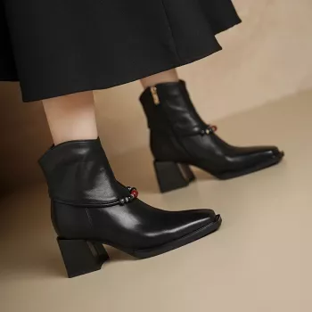 Women's Retro Chunky Heel Ankle Boots with Square Toe