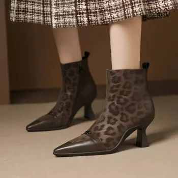 Leopard Print High Heel Ankle Boots for Women - Sexy Winter Leather Boots