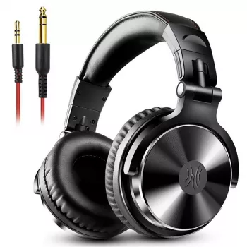 Over-Ear Wired Headphones with Detachable Mic for DJs and Studios