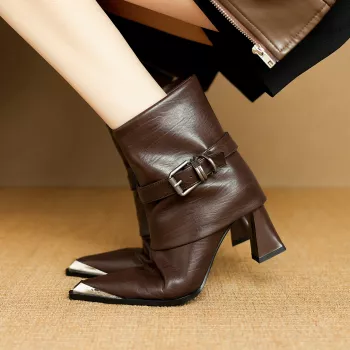 Women’s Elegant Leather High Heel Winter Ankle Boots