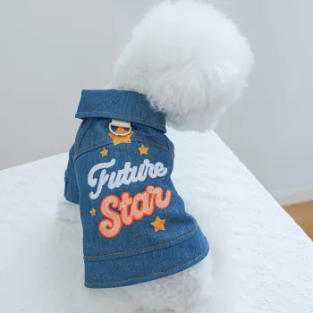 Embroidered Denim Dog Jacket Harness for Small Breeds