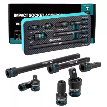 7-Piece 1/2" Impact Socket Adapter & Extension Set with Swivel and Hex Converter