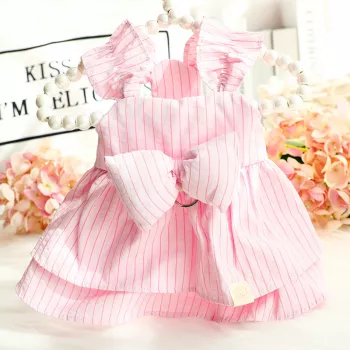 Spring Cotton Dog Dress with Stripes & Bow for Small Dogs