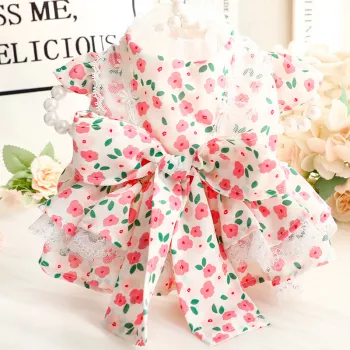 Pink Lace Flower Tutu Dog Dress with Bow for Princess Parties
