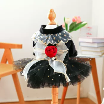 Velvet Princess Dog Dress with Sequins, Floral & Butterfly Details