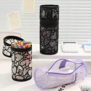 Transparent Mesh Pencil Case Large Capacity School Pen Pouch