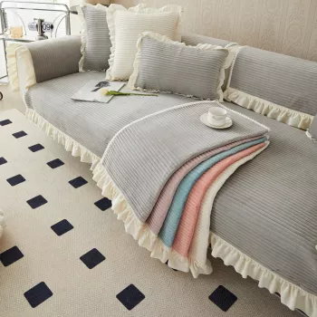 Winter Plush Anti-Slip Sofa Cover with Wood Ear Edge – Thick Velvet Seat Mat