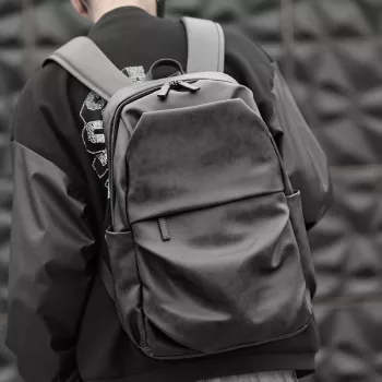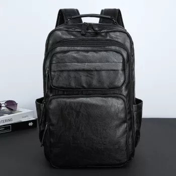 Men’s Luxury PU Leather Laptop Backpack with Flap & Lock