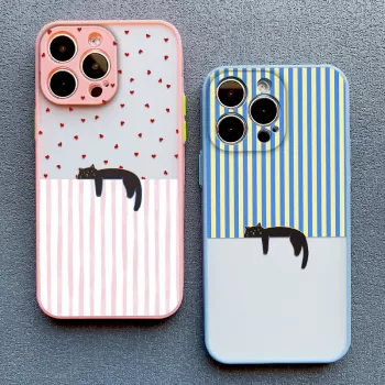 Striped Cartoon Cat Phone Case for iPhone – Cute & Protective Cover