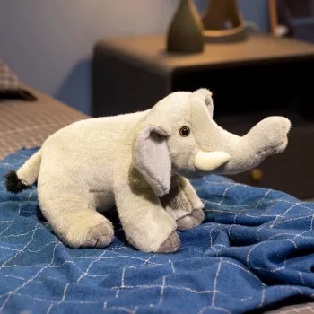 15-Inch Lifelike Grey Elephant Plush with Upturned Trunk