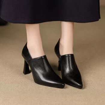 Elegant Pointed Toe Leather Pumps with Thin Heel and Zipper
