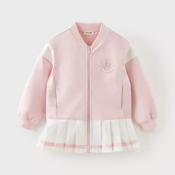Girls Pink Spring Baseball Jacket with Turn-Down Collar
