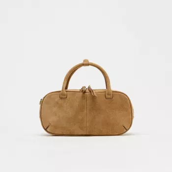 Luxury Mini Suede Handbag with Double Handles and Crossbody Strap