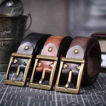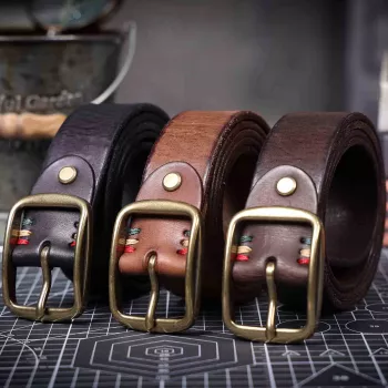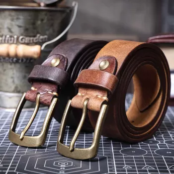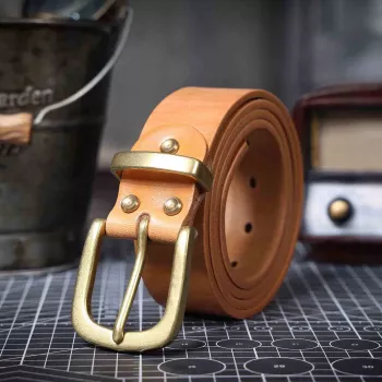 Vintage Genuine Leather Belt with Solid Brass Buckle