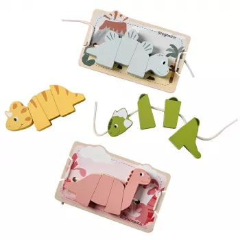 Montessori Dinosaur Lacing Toy Wooden Threading Puzzle for Toddlers