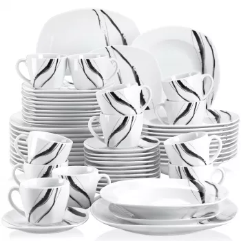 Elegant Ivory Porcelain Dinnerware Set with Cups & Plates
