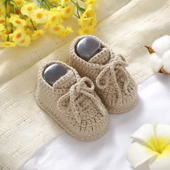 Newborn Cotton Knit Baby Shoes with Bandage Tie