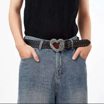 Rose Heart Gothic Belt with Drop Oil Buckle – Punk Y2K Street Style