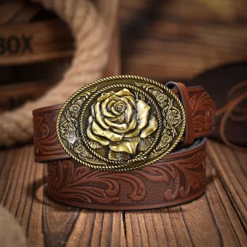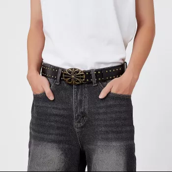 Men’s Punk Bronze Flower Buckle Rivet Leather Belt