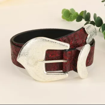 Elegant Floral Metal Buckle PU Leather Belt for Women