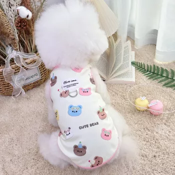 Small Dog Cartoon Vest – Breathable Pullover T-Shirt with Leash Hole