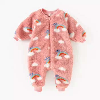 Baby Fleece Lined Romper with Rainbow Cloud Print