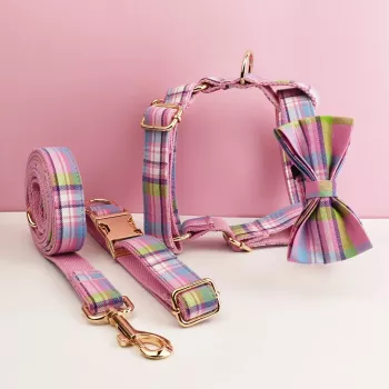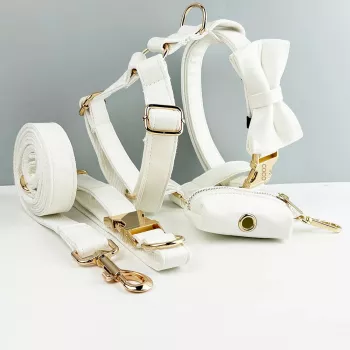 Luxury Dog Collar Harness & Leash Set with Floral Bow