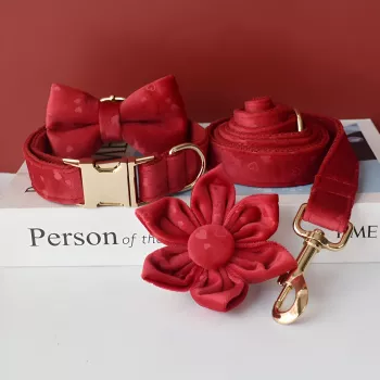 Flower Gold Red Hearts Dog Collar – Small to Large Breeds