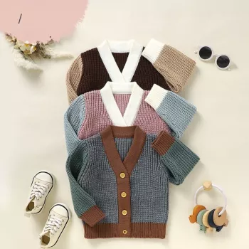 Baby Color Block Knit Cardigan V-Neck Sweater 0-3Y Boys Girls