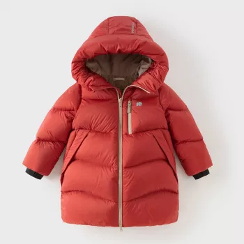 Winter Long Down Jacket for Kids with Plush Hood and 90% Duck Down Warmth