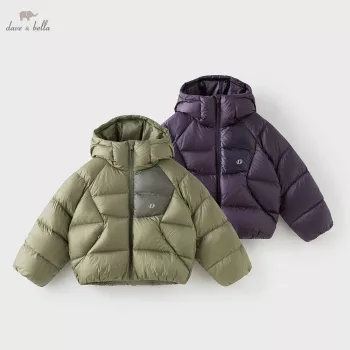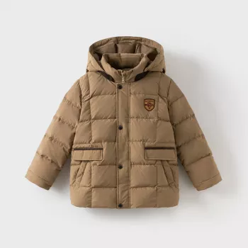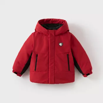 Winter Plush Hooded Down Jacket for Boys, Waterproof & Ultra-Warm
