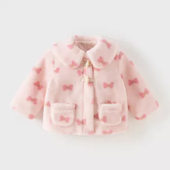 Girls Winter Plush Coat with Double-Breasted Warmth