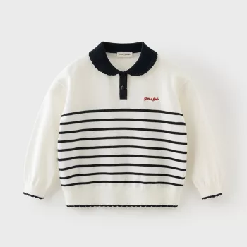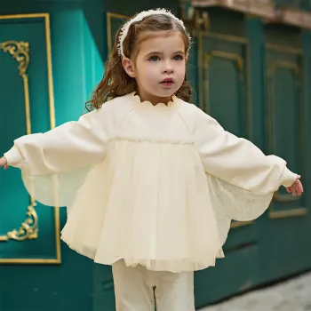 Girls Elegant Mesh Pullover with Lace Collar – Spring & Autumn Sweatshirt