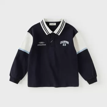 Kids Long Sleeve Cotton Polo Tee with Letter Print for Boys