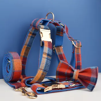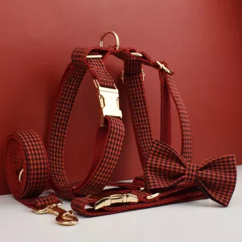 Luxury Dog Collar Leash Harness Set with American Flag Bow Tie