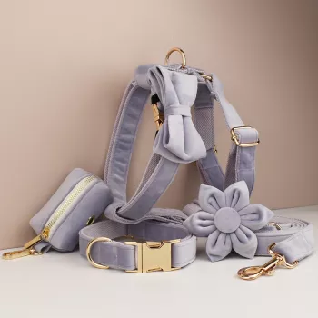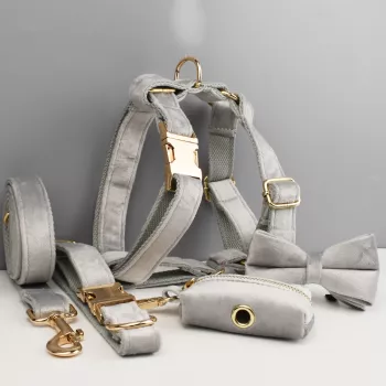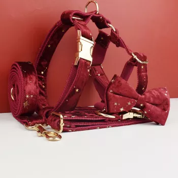 Velvet Dog Collar Harness Leash Set