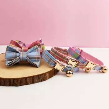 Plaid Bowknot Cat Collar with Safety Buckle
