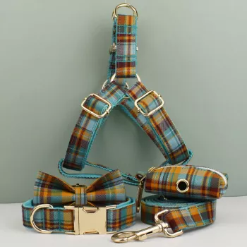 Luxury Dog Collar Leash Harness Set with Bow Tie