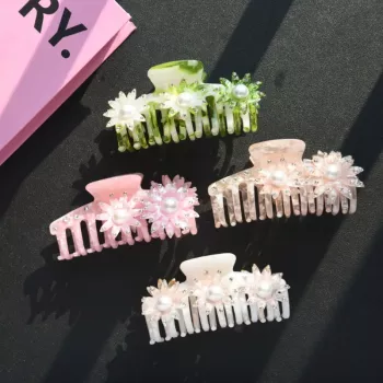 Sunflower Pearl Rhinestone Hair Claw Clip